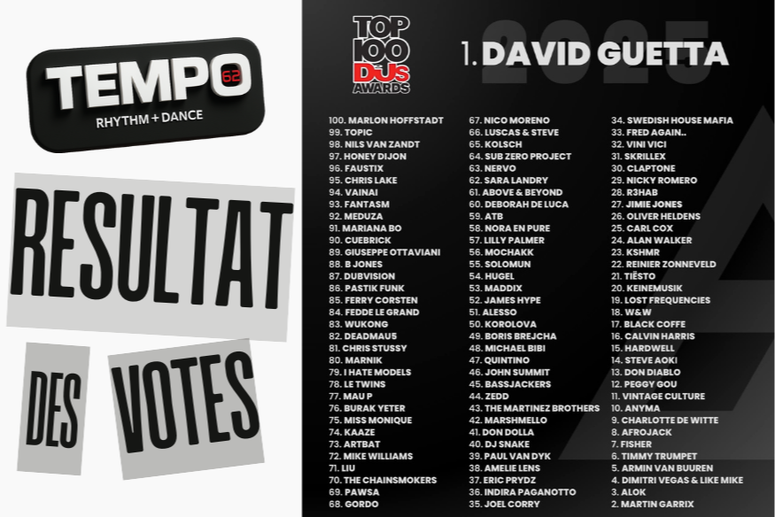 DJ MAG a dévoilé son nouveau TOP 100 des DJ'S , le grand gagnant de l'année 2025 , c'est DAVID GUETTA (pour la 4ème fois)  détrônant MARTIN GARRIX (qui se retrouve 2ème cette année) ... et vous quel est votre numéro 1 ??